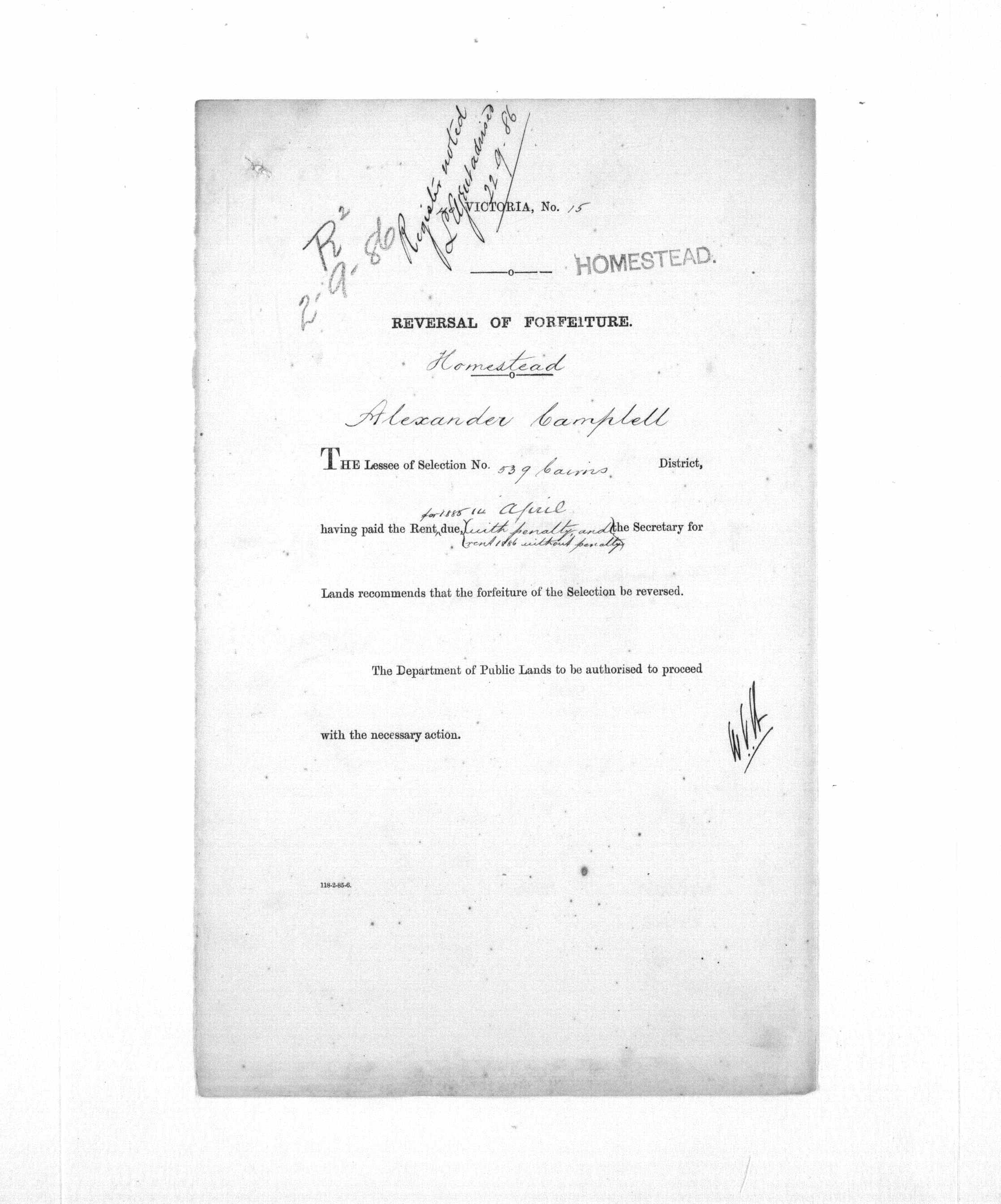 2 Sep 1886. Reversal of Forfeiture.