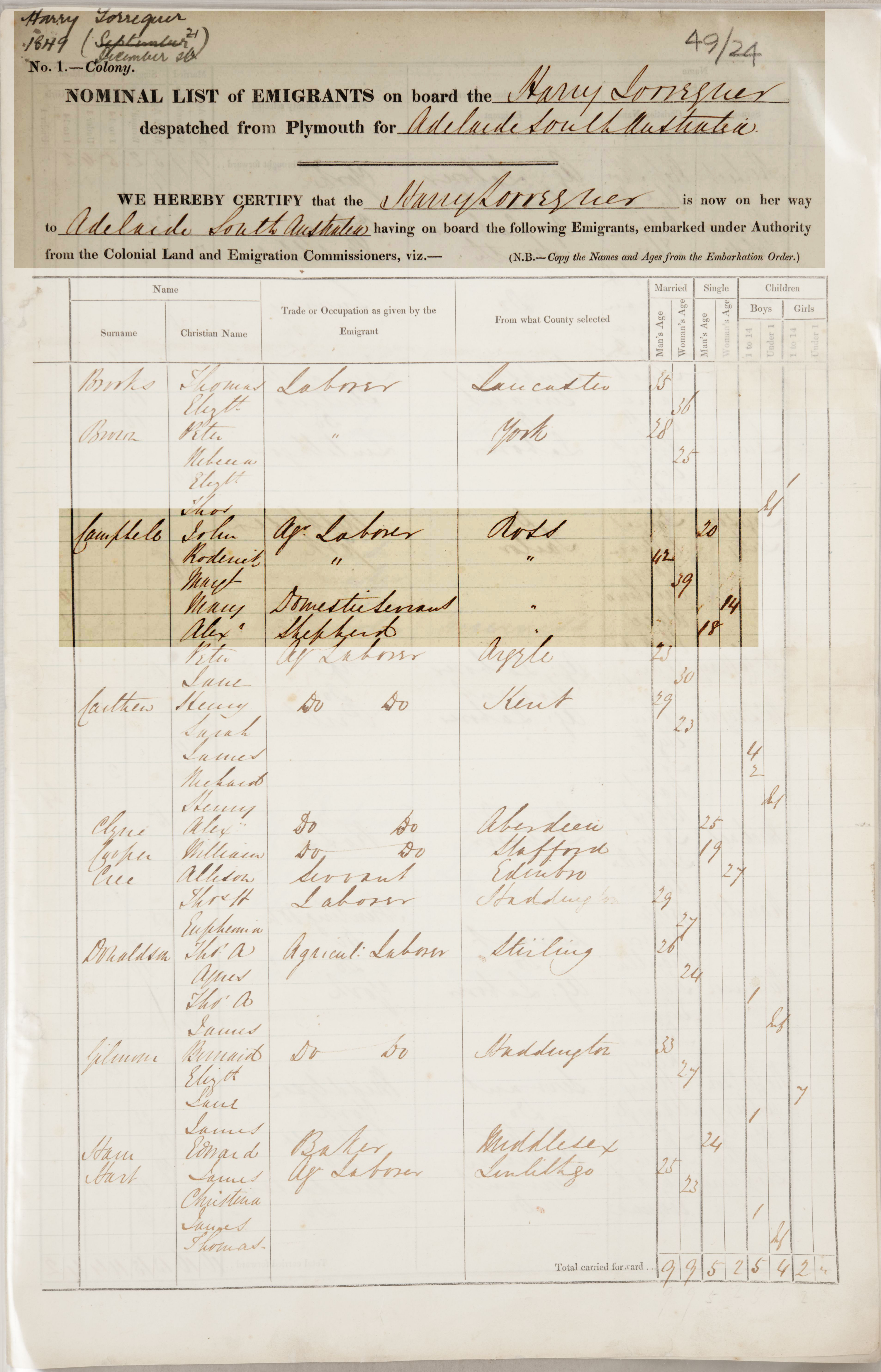 1849. As with most immigrant ships to South Australia, the passenger list was transcribed in the South Australian Register. Alexander had his 19th birthday 10 days