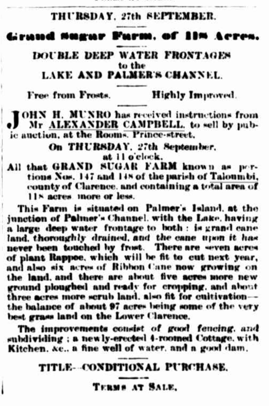gave a long and candid interview that covered his sugar cane farming activities in Queensland and New South Wales since 1873. The