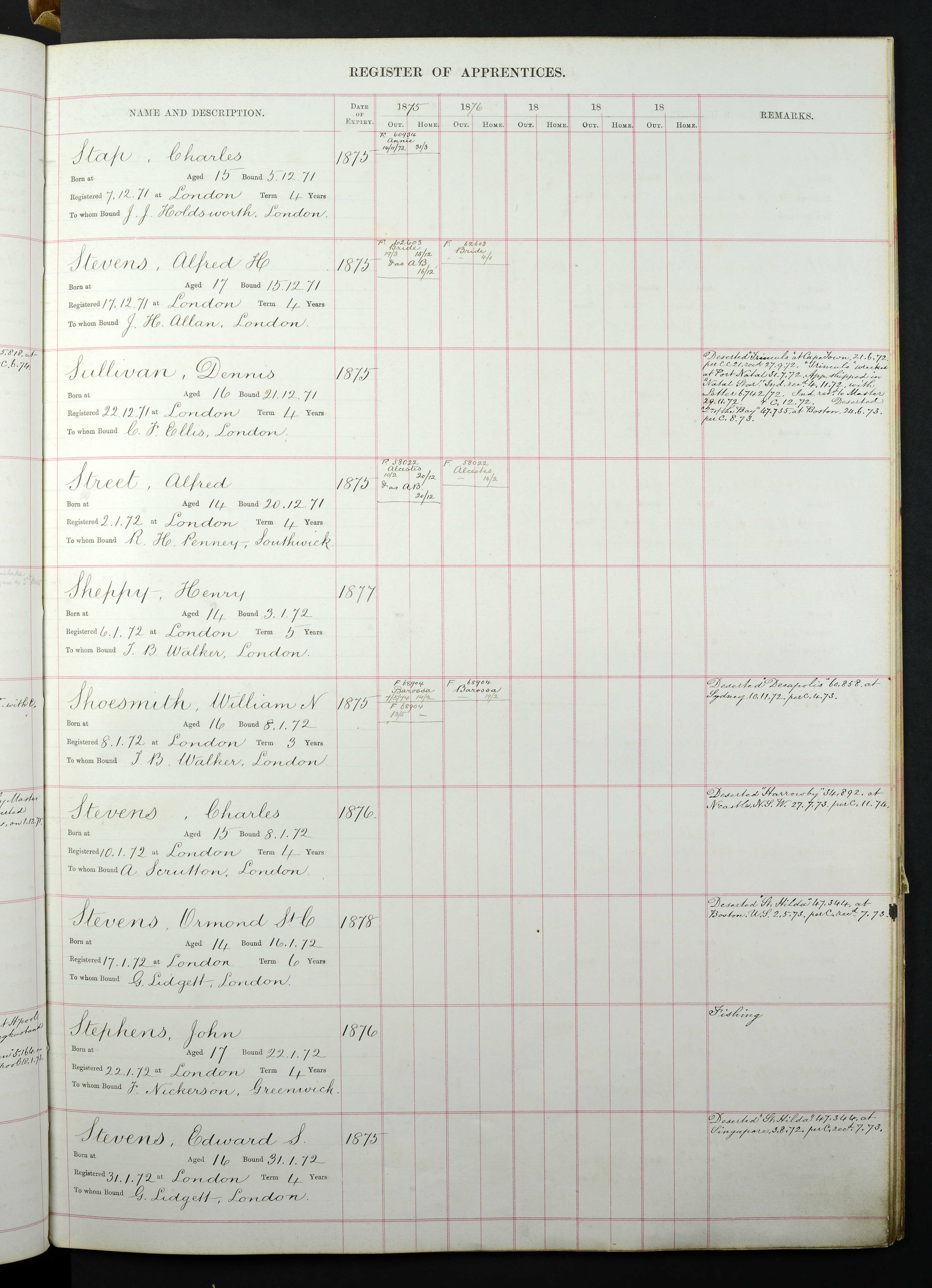 Fifteen year old Charles Henry Stap is bound to a merchant seaman apprenticeship. He is assigned to the 438 ton barque Annie.