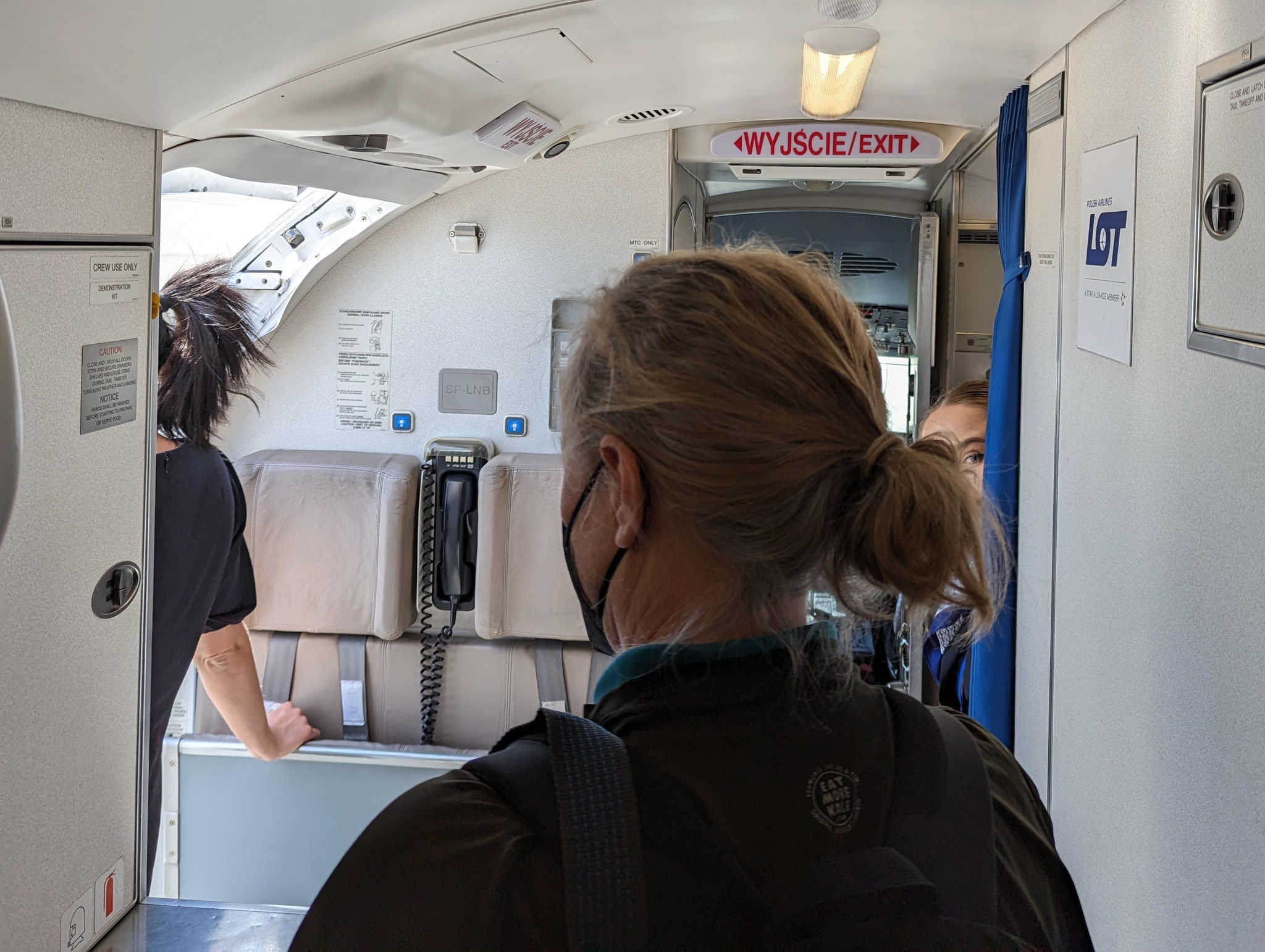 We're disembarking from the LOT aircraft from Copenhagen for our 4 hour layover in Warsaw. Nice flight, nice people!
