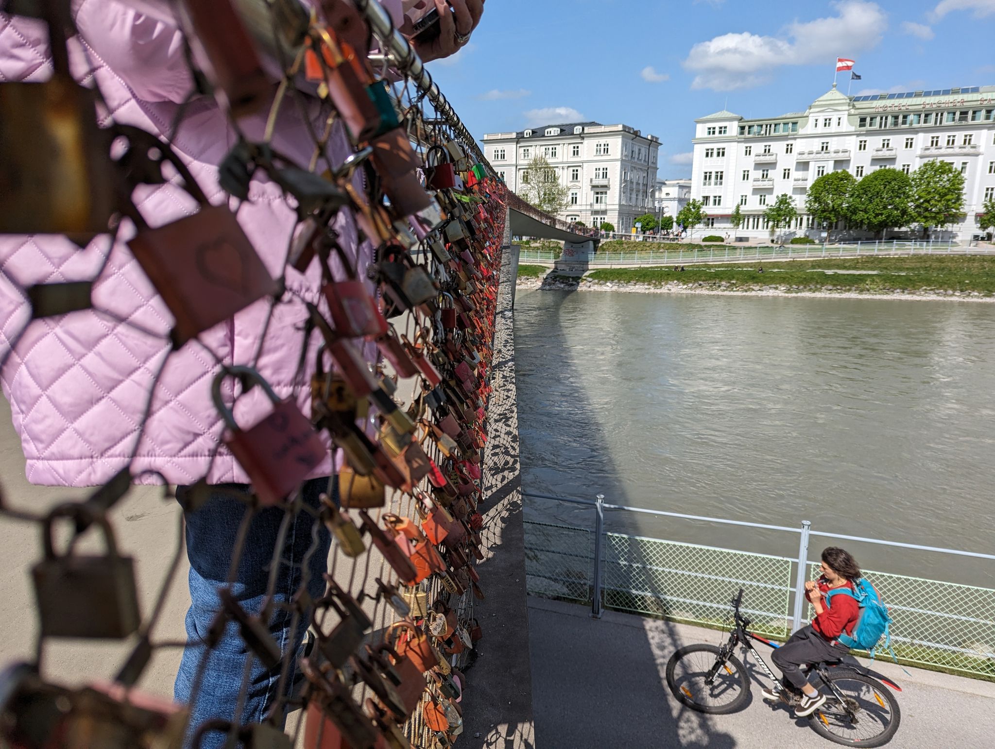 The Marko-Feingold-Steg pedestrian bridge in Salzburg is covered in those lovelock things. Presumably all the keys get thrown into the Salzach...not great!