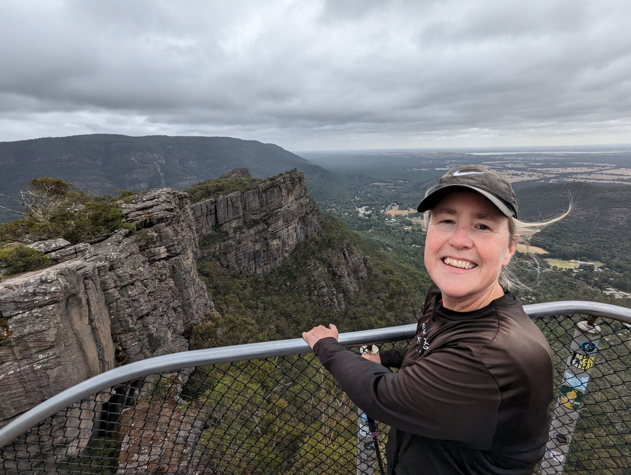The Pinnacle on a windy and cold day, Halls Gap in the background.