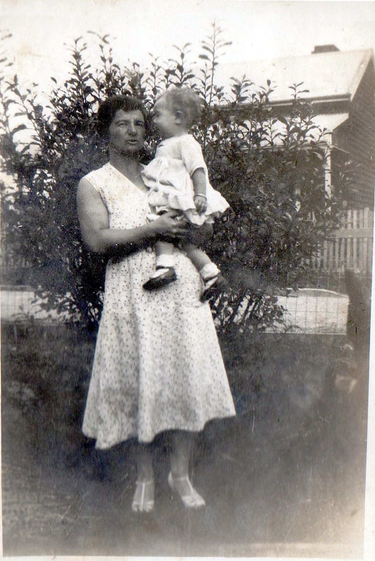 Florence Ada Griffin (my great aunt "Doll") holding my Aunty Joan.