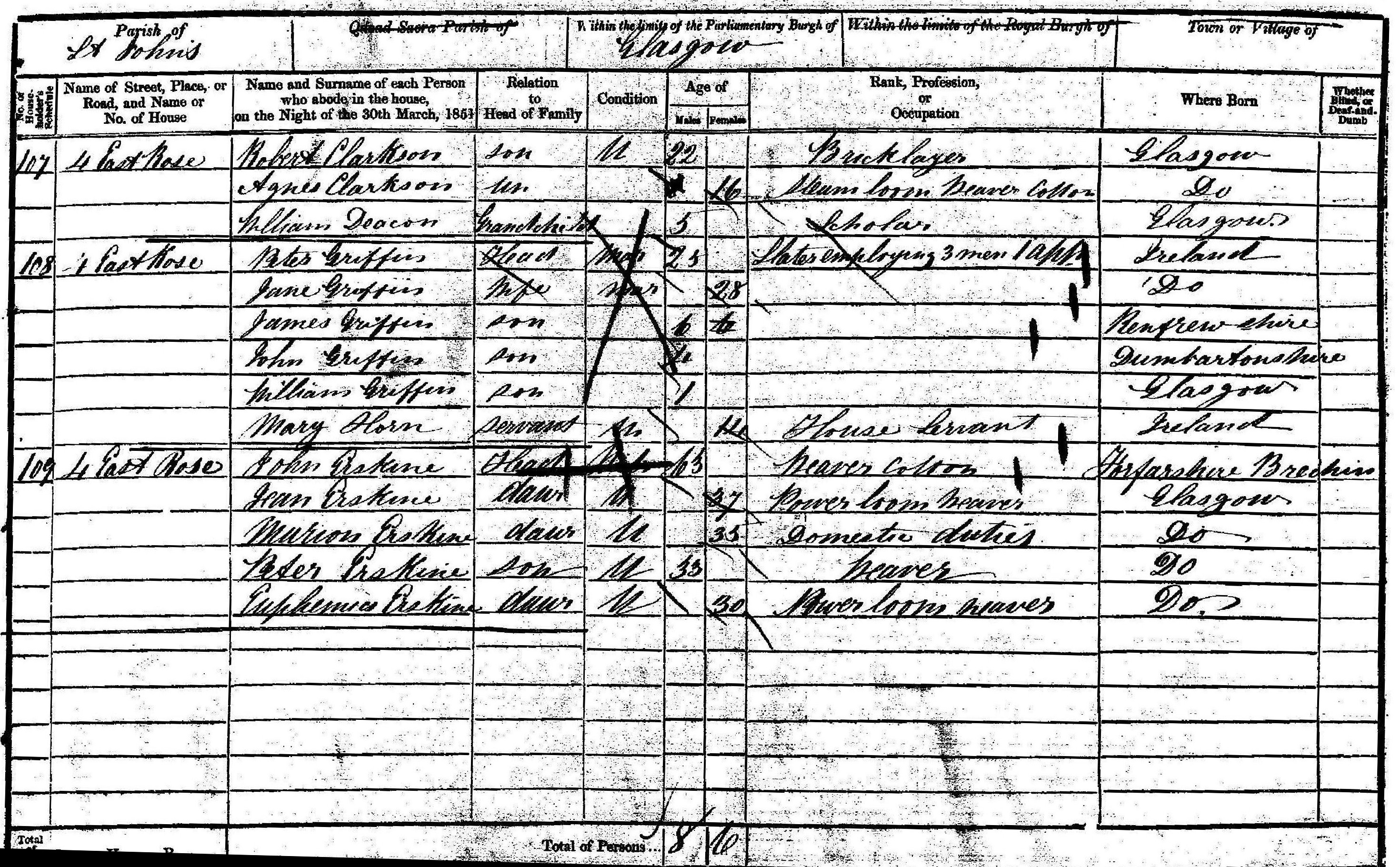 (roofing) business in the Irish Catholic neighborhood of Calton. William's mother was Jane Griffin (nee Deverty). Jane Deverty and Peter Griffin were born in