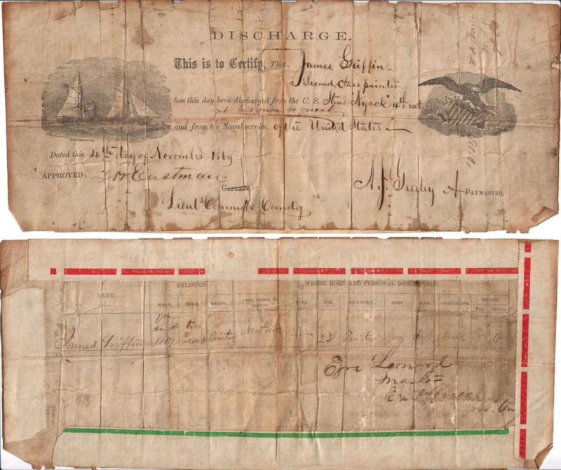 James Griffin, painter 2nd class, US Navy Discharge, 4 November 1869.