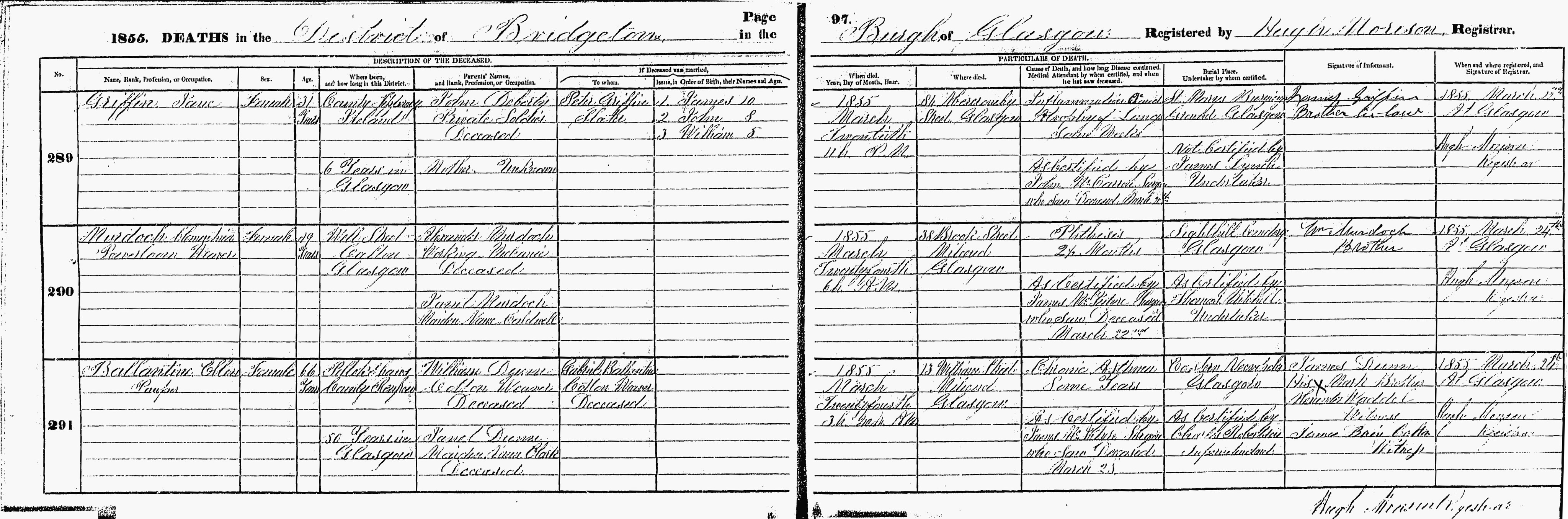 Scotland on 22 March 1850. William's father, Peter Griffin, ran a slating