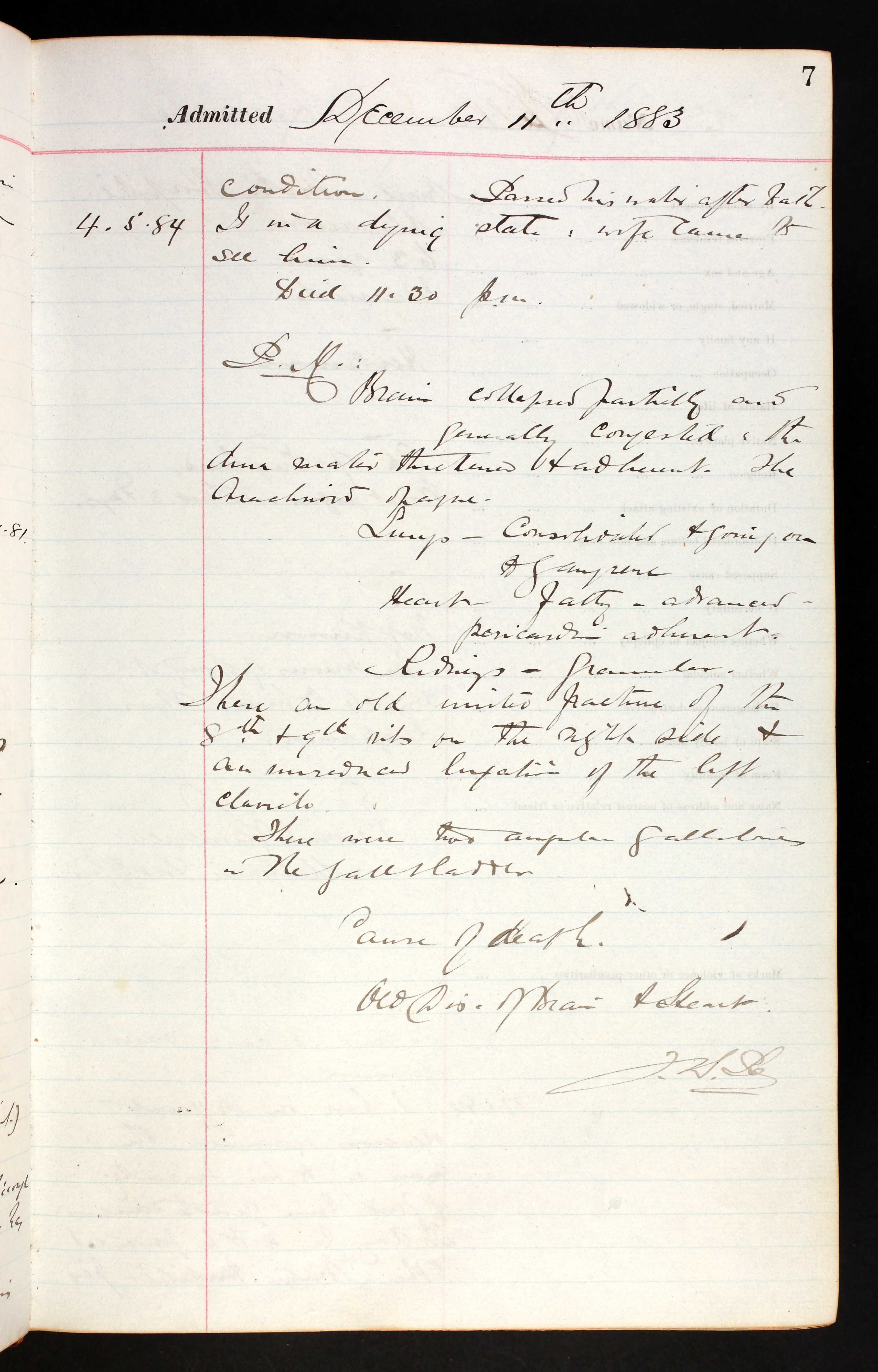 Peter remained in the asylum until he died at 11:30pm on 4 May 1884. His wife Sarah visited