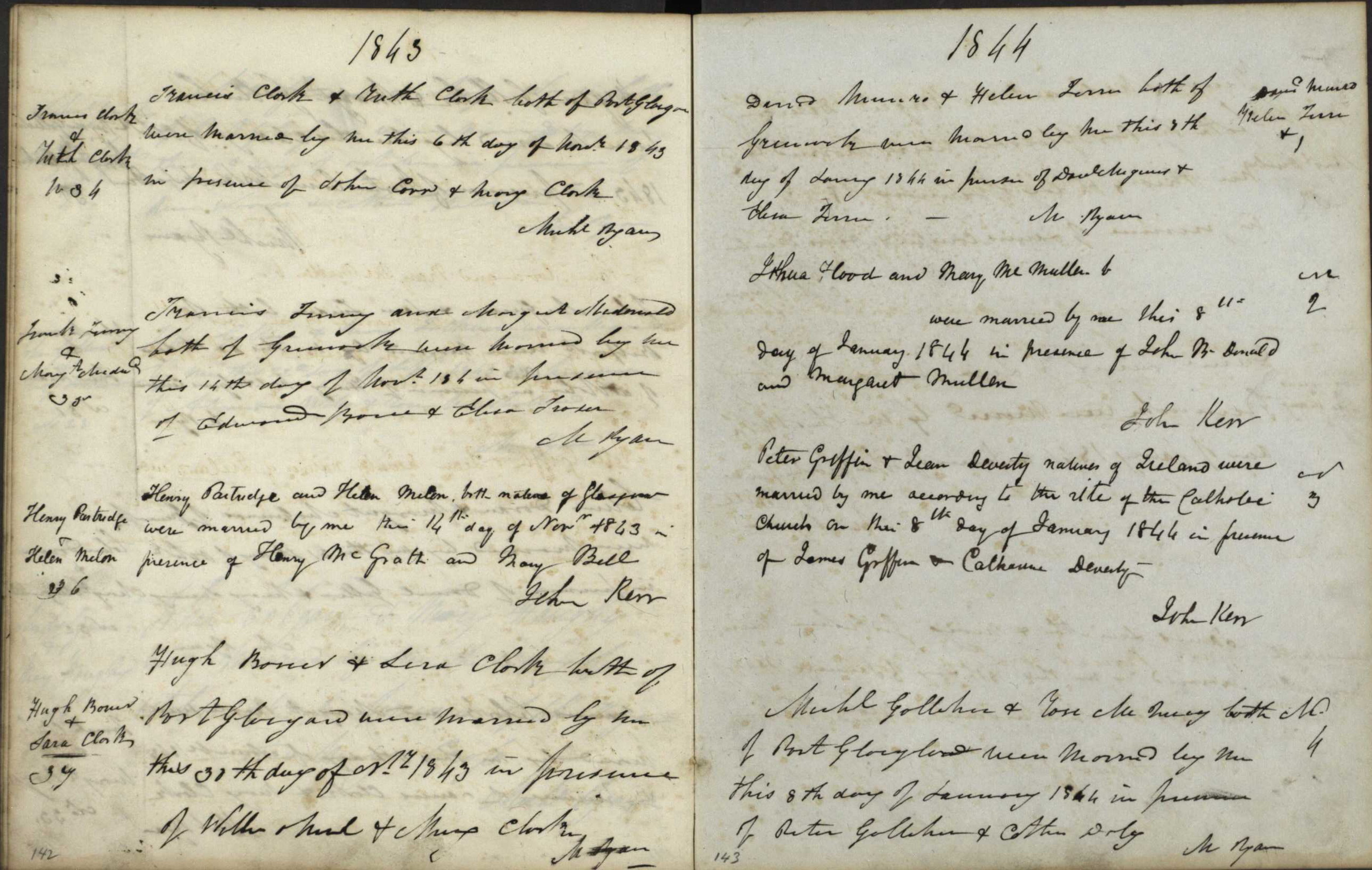 Peter Griffin and Jane Deverty's marriage record from the Catholic Register.