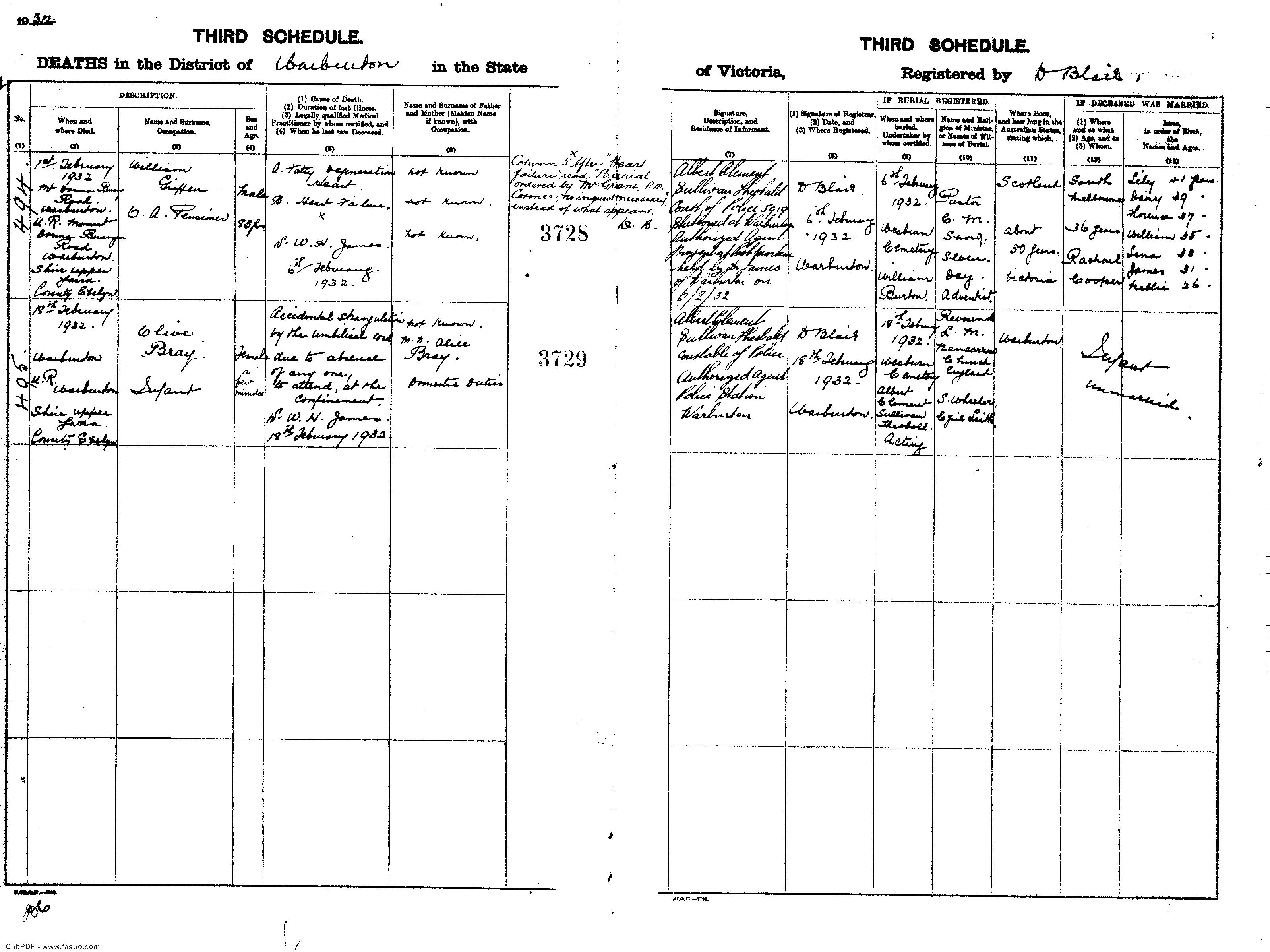 William died on 1 February 1932 in Warburton, aged 81. He was buried in an umarked grave in the Seventh Day Adventist section of the